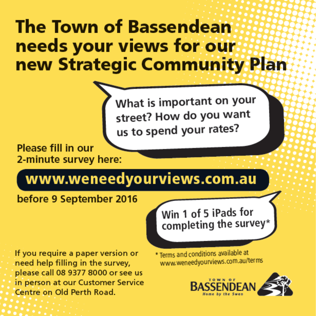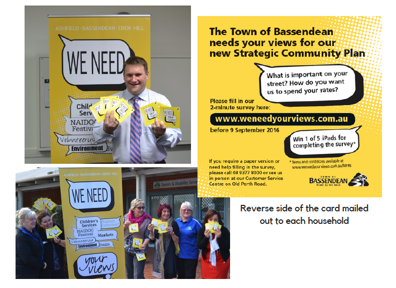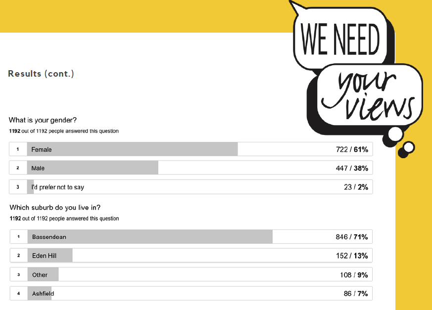 The Town of Bassendean sought to engage residents to take part and provide input through a two-phased approach to consultation and engagement, beginning with a mass engagement phase to gather broad community views before more detailed facilitated discussions.