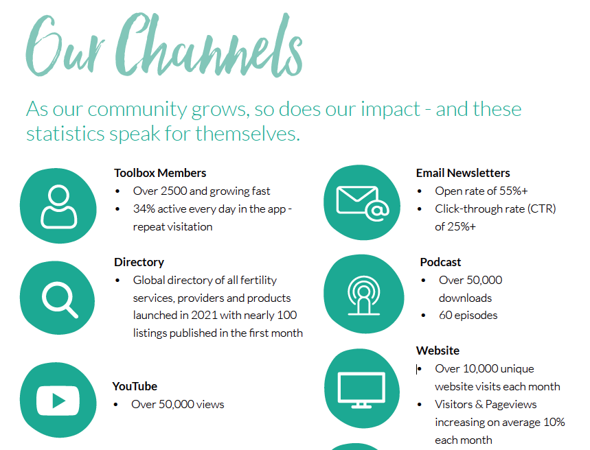 Development and launch of an innovative membership app, Your Fertility Toolbox, alongside a comprehensive content, community, and partnership ecosystem.