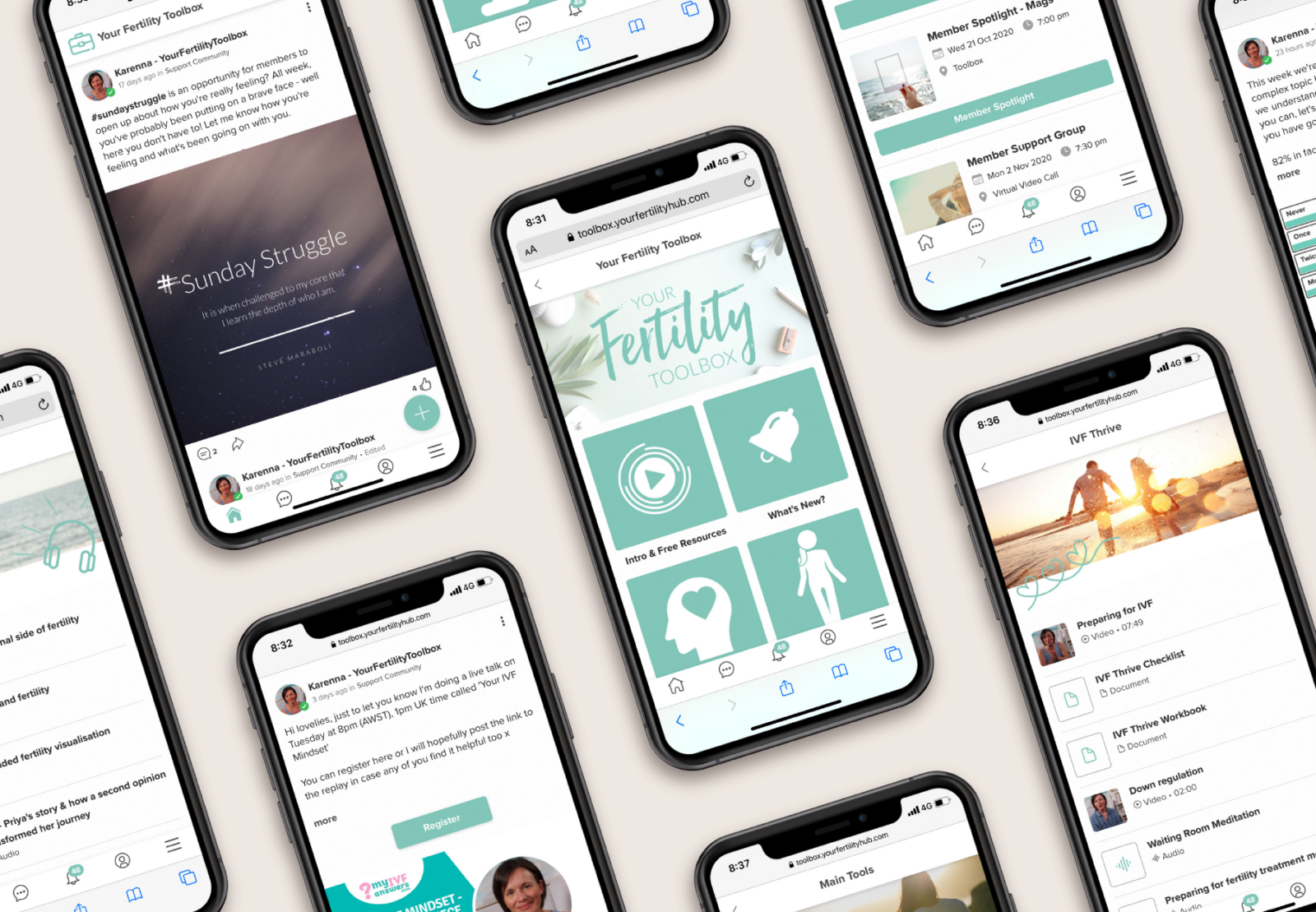 Central to this was the creation of Your Fertility Toolbox, a membership app that housed hundreds of downloadable workbooks, audio guides, and videos, alongside a community space where members could connect and manage their subscription seamlessly in one place.